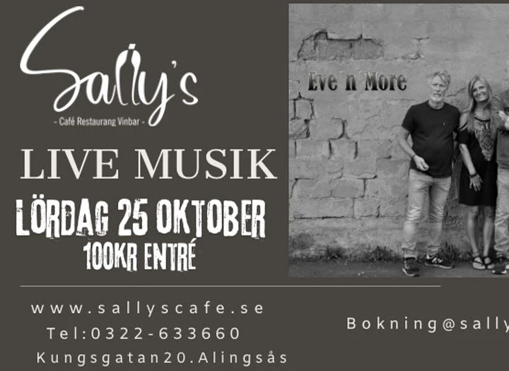 Vi rundar av oktober med Eve n more på scenen! ✨ En kväll fylld av levande musik, goda smaker och den där speciella Sallys-känslan. Perfekt avslut på månaden tillsammans med vänner och familj.
